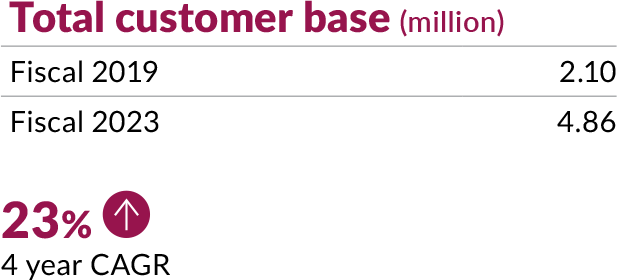 Through Axis Finance, our AAA rated diversified NBFC arm, we provide wholesale and retail lending solutions to corporate and retail customers across geographies and businesses. Axis Finance is one of India's most rapidly growing NBFCs, with a 43% CAGR in AUMs (Assets Under Management) from fiscal 2020 to fiscal 2023. This can be attributed to our strong operational and risk management practices, supported by the dependable technology infrastructure and has consistently achieved exceptional operating metrics and returns.