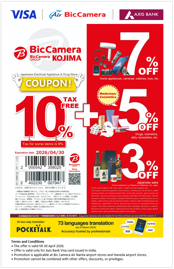 Spend on tax-free shopping & receive instant discount as per coupon terms.